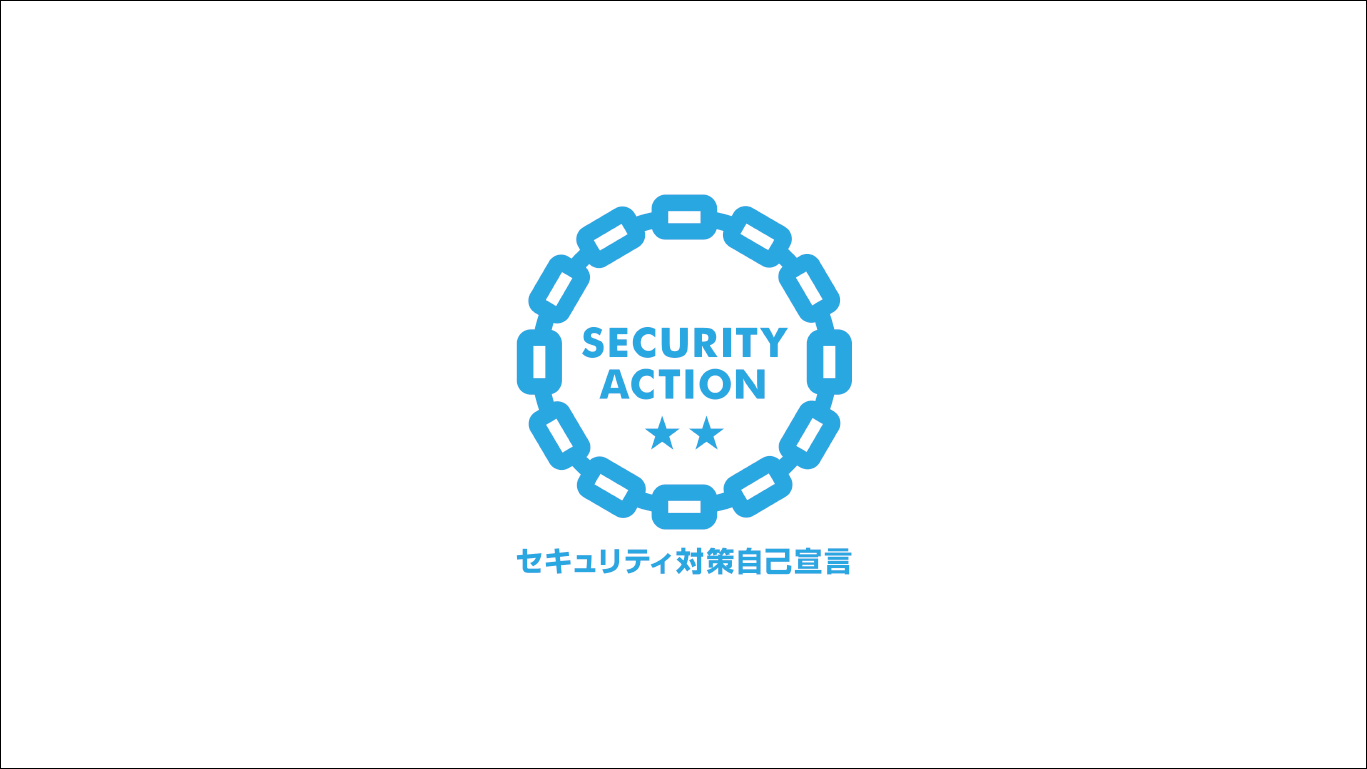 弊社は、独立行政法人情報処理推進機構(IPA)が実施している「SECURITY ACTION」において、SECURITY ACTION二つ星を宣言いたしました。今後も情報セキュリティ経営方針に則り、安全かつ適正な情報セキュリティ対策を実施し、情報セキュリティの強化を行ってまいります。